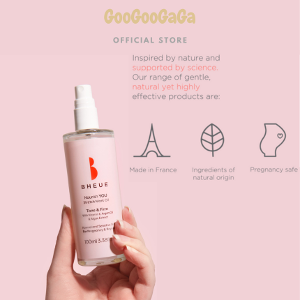 Experience the rejuvenating benefits of BHEUE Nourish YOU. Stretch Mark Oil (100ml), a premium body oil crafted in France with 95% natural ingredients. Specially formulated for pregnant and breastfeeding mothers, this stretch mark oil combines Vitamin E, Algae Extract, and Cold Pressed Argan Oil to protect, hydrate, and firm the skin. Regular use helps lift, tone, and improve the appearance of skin across the bust, abdomen, and legs, making it an essential addition to your maternity skincare routine.