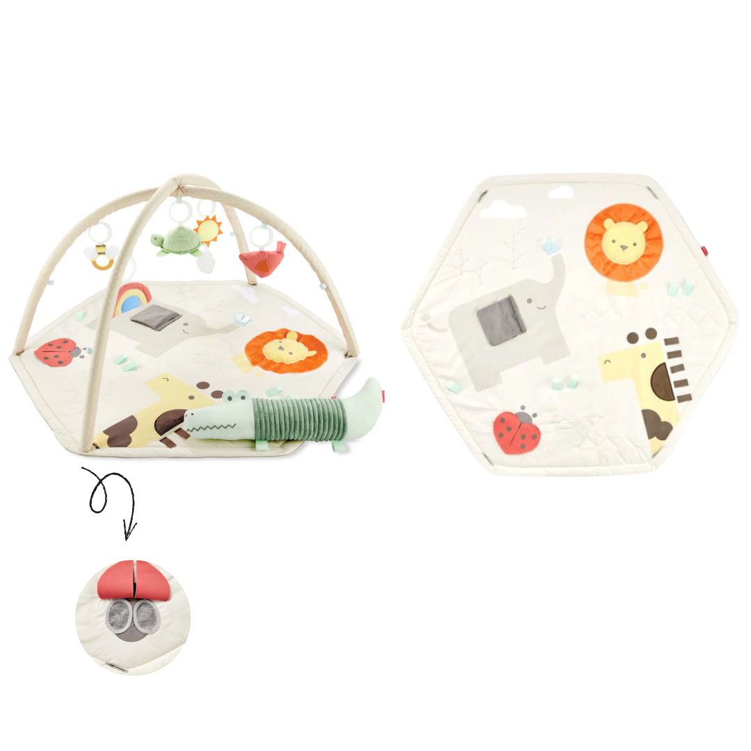 Turn every playtime into a world of discovery with the Skip Hop Geometric Wonders Activity Gym. Designed for babies, its vibrant colours, interactive toys, and soft padded mat support tummy time, motor skills, and sensory exploration—making every moment playful, safe, and developmental.